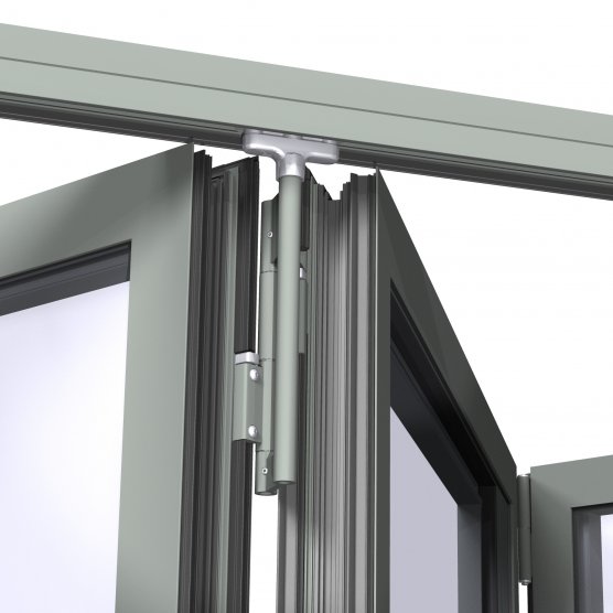 In der Schwelle des CF77-Systems bewegt sich ein Laufwagen (Führungsmechanismus der Faltflügel), auf den das Gewicht der beweglichen Konstruktionen übertragen wird. Bei Faltkonstruktionen aus Fenstersystemen bewegen sich die Laufwagen auf Führungsschienen, die stirnseitig am Rahmen befestigt sind.