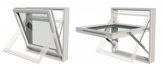 Öffnungsart: der Flügel dreht sich um 180 Grad (horizontale Drehachse)