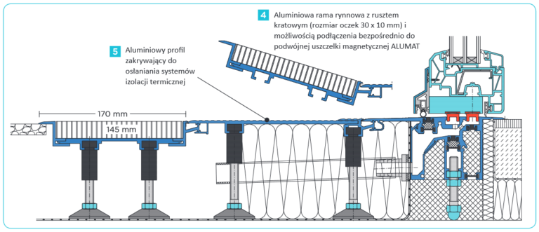 ALUMAT Aluminiumschwellen bündig mit dem Boden +3 mm, mit Wasserableitung und Abdichtung unten, speziell für barrierefreie Durchgänge. Erhältlich in den Versionen: MFAT 20/40; MFAT 20/70; MFZ 20; MFHST 20